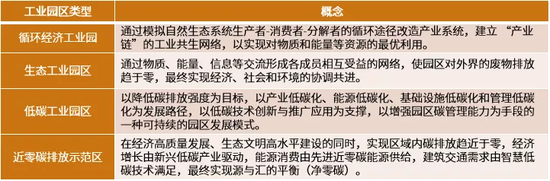 总体而言,我国工业园区低碳化转型历程可总结为四种类型:循环经济工业园、生态工业园区、低碳工业园区、近零碳排放示范区(详见下表)。