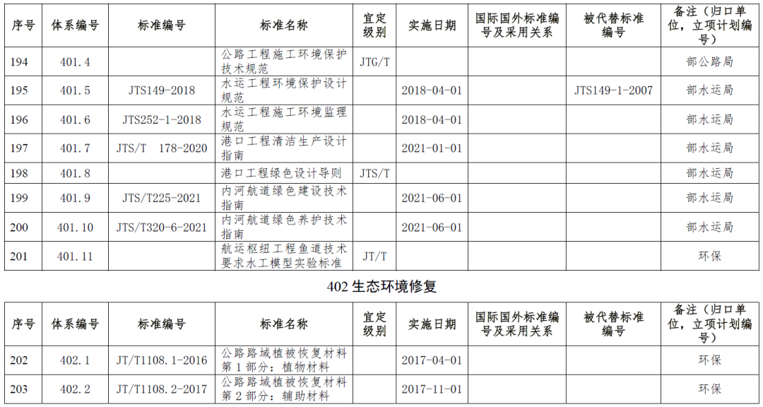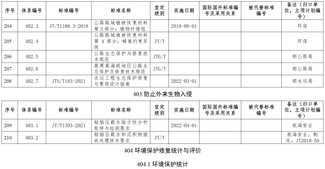 生态环境保护修复标准400,包括环境保护技术、生态环境修复、防止外来生物入侵和环境保护修复统计与评价等四个方面。
