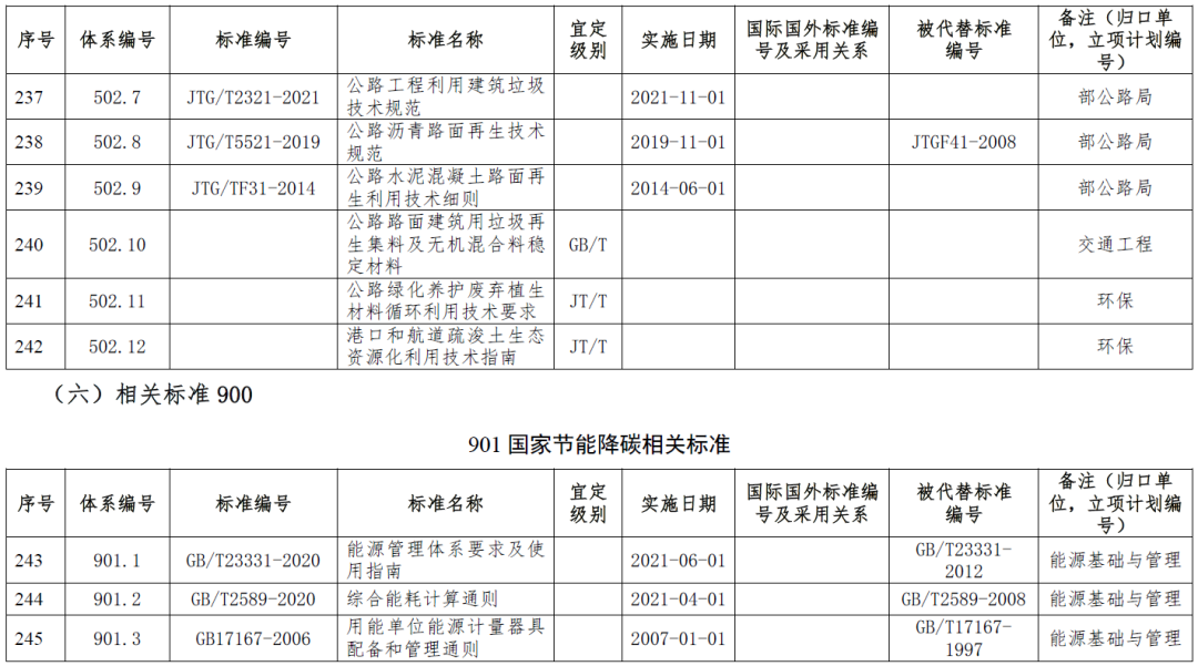 相关标准900,包括与交通运输行业节能降碳、污染物排放和生态环境保护相关的国家标准、国家生态环境标准。