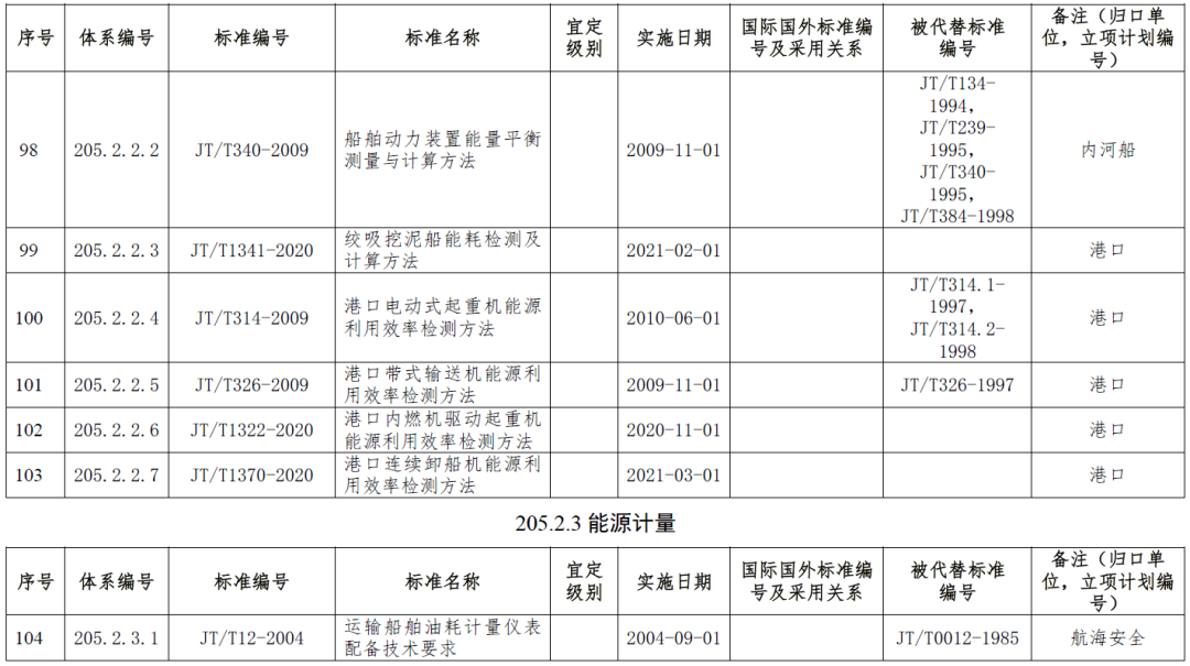 导读:日前,交通运输部印发《绿色交通标准体系(2022年)》。《绿色交通标准体系(2022年)》包括5个部分,即100基础通用标准,200节能降碳标准,300污染防治标准,400生态环境保护修复标准,500资源节约集约利用标准。其中,基础通用标准包括术语和绿色低碳评价两个方面;节能降碳标准包括新能源与清洁能源应用、能耗能效、碳排放控制、节能设计与管理,以及核算与监测等五个方面;污染防治标准包括大气污染防治、水污染防治、噪声污染防治、固体废弃物处置和船舶污染物综合排放等五个方面;生态环境保护修复标准包括环境保护技术、生态环境修复、防止外来生物入侵和环境保护修复统计与评价等四个方面;资源节约集约利用标准包括污水再生利用和废旧物循环利用两个方面。