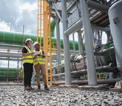 5月26日,施工人员在位于肯尼亚纳库鲁市的索西安地热电站项目建设现场检查发电设施。中肯地热发电项目助力肯尼亚弥补电力缺口、加快能源转型。